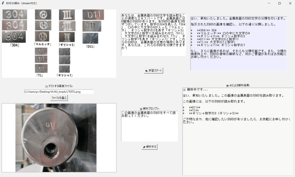VLM画像分類アプリの応用例(金属刻印文字)